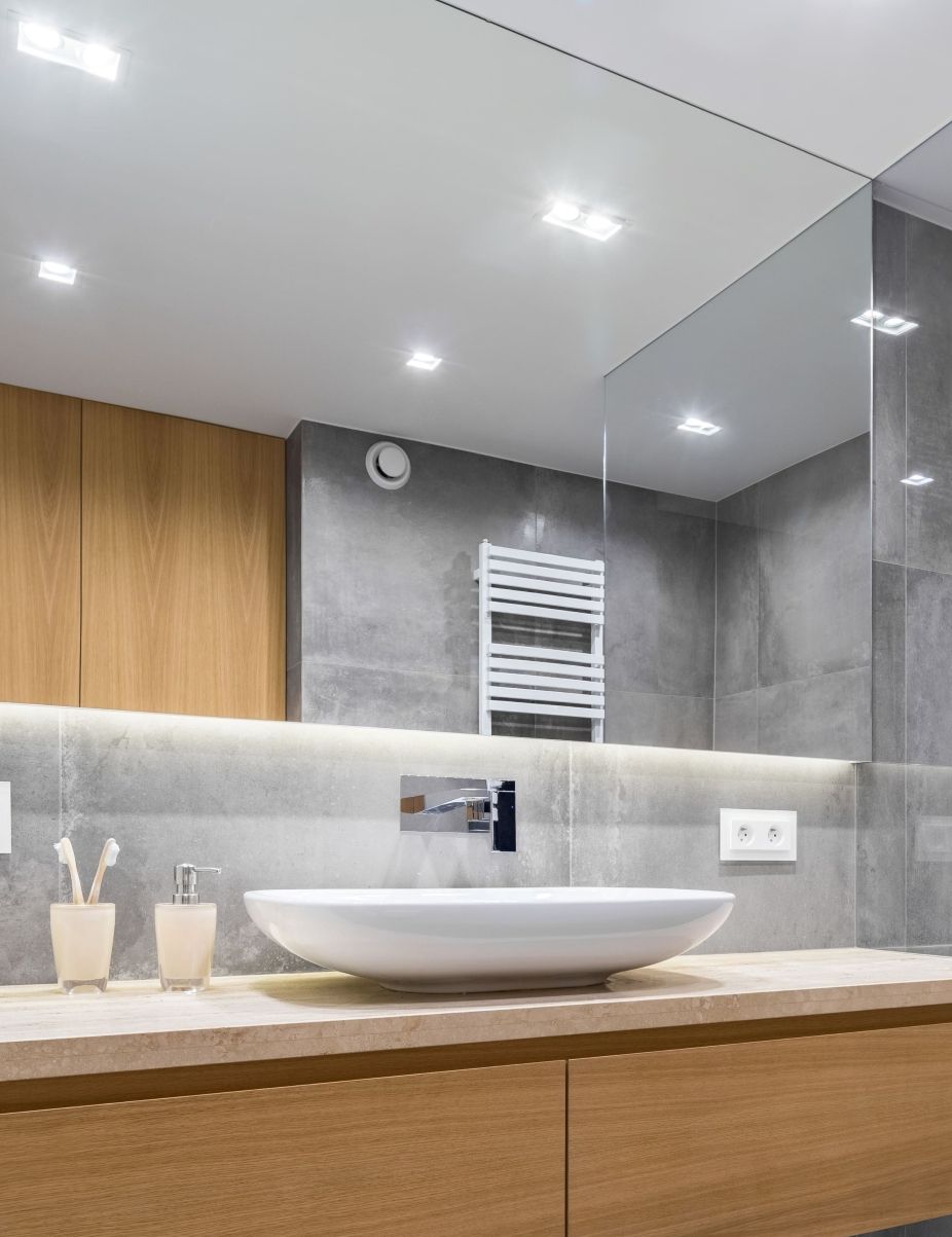 - Badezimmer: Ein maßgefertigter Badspiegel wertet jeden Feuchtraum auf und passt sich perfekt an Nischen oder Fliesenspiegel an.